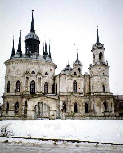В.И.Баженов любил необычные планировочные и объемные композиции. Быковский храм - овальный в плане. По некоторым сведениям, прямоугольная трапезная была пристроена в начале XIX века архитектором Малиновским.