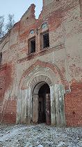 Подняв взгляд, можно увидеть то, что когда-то было хорами в храме. Теперь лишь железный остов торчит из стены. А когда-то здесь звучали песнопения прекрасного женского хора.