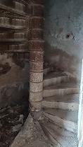 Частично уцелела винтовая лестница, когда-то по ней можно было подняться на высокую колокольню. Главный колокол весил 300 пудов.