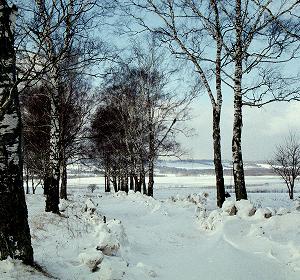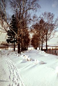 От него по красивой березовой аллее можно спуститься к заливным лугам у слияния двух речек.