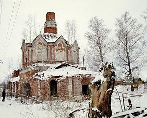 Тихвинская церковь, напоминающая своим убранством лучшие образцы XVII века, хороша и в руинах. Остатки старых деревьев придают дополнительный колорит запустения...