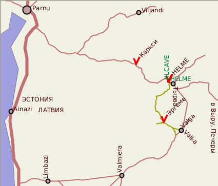 Местечко Хельме в Эстонии известно руинами орденского замка и пещерами. Замок Хелмет ( в русских источниках - Гельмет) по преданию был основан магистром Ливонского ордена Георгом (Юргеном) фон Айхштэттом (Эйкстатом). (Georg von Eichstatt). Магистр погиб в бою у Лиелварде в 1262 году. Крепостные укрепления Хелмета, частично сохранившиеся до наших дней, были построены позже, в первой половине XIV века. По форме высокого холма, на котором стоит замок, крепость была овальной в плане и занимала довольно большую пощадь (120 х 60 м). Укрепление играло важную стратегическую и внутриполитическую роль. Здесь в 1471 году был арестован низложенный впоследствии магистр Ливонского ордена Иоганн Вольтхузен-Герц. Во время Ливонской войны замок находился под властью польского короля Сигизмунда-Августа, который отдал его финляндскому герцогу Юхану (Иоанну), женившемуся на сестре полького короля. Екатерина получила в приданое несколько замков, в том числе Хелме, Каркси и Эргеме. Ими по распоряжению Юхана стал управлять граф Ян Арц. Сложная внешнеполитическая ситуация и неудачи герцога Юхана привели к тому, что граф Арц стал искать подержки то у поляков, то у русских. Кончилось все печально. Арц был схвачен и брошен в подземелье замка Хелмет. Перевезенный позднее в Ригу, он попал в руки герцога курляндского Готарда Кетлера (последнего гроссмейстера Ливонского ордена), который приговорил Арца к смерти. В начале 1563 года несчастного управляющего разорвали раскаленными клещами, разрубили на четыре части и колесовали. Замок Хелмет сдался русскому воеводе Н.Р. Захарьину-Юрьеву. В 1582 замок снова отошел полякам.В 1600 году во время шведско-польской войны Хелмет сдался без боя отряду шведского герцога Карла Седерманландского. Крепость несколько раз переходила из рук в руки, и в 1658 году была разрушена шведами. В 1701 году во время Северной войны, после победы русских при Гуммельсгофе, городок Хелме был разрушен Б.П. Шереметевым. По преданию, из замка шли подзмные ходы к расположенным у подножия холма источникам. В соседнем с замковым холме сохранилась пещера, однако она имеет естественное происхождение: отверстия были проделаны родниками в светлом песчанике. Позднее окрестные жители расширили пещерные ходы и стали использовать их для своих нужд. Когда-то здесь было 7 соединенных проходами помещений, в самом большом зале находилась Моисеева (Moosese kirik) церковь.