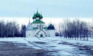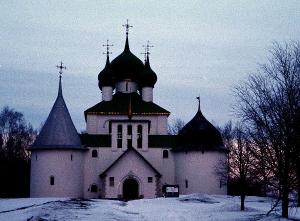 древнерусского города, между ними - звонница. Сам пятиглавый храм как бы спрятался