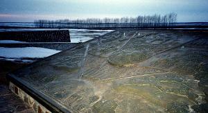 Успели. У прекрестка современных дорог, на пологом холме, возвышается черный обелиск, а рядом, среди небольшой рощи стоит очень необычный храм. Две ассиметричные башни у входа, напоминающие фрагмент стены