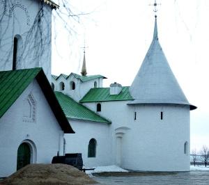 за стеной. Мягкие "новгородские" линии башен немного контрастируют с более