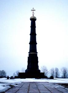 Рядом с храмом,на открытой вершине холма, стоит обелиск,