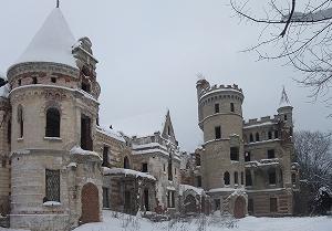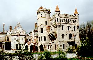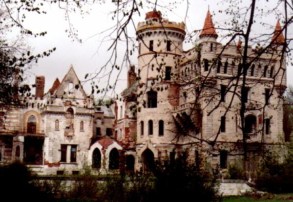 По преданию, Владимир Храповицкий, путешествуя по Франции в 1880-е годы, был в восторге от средневековых замков. На замечание французов, что в России ничего подобного нет, Храповицкий нашел своеобразный ответ: он заключил пари, что построит замок. Пригласив через несколько лет французских друзей в свое имение, хозяин продемонстрировал удивленным гостям не просто замок, а "готический" дворец с парком и каскадом прудов у главного дома. Так возник этот великолепный ансамбль, поражающий и поныне своим размахом и удивительной свободой пространственного решения. Не поворачивается язык назвать это "эклектикой" (хотя этот термин прочно укоренился применительно к постойкам данной эпохи). Изощренность