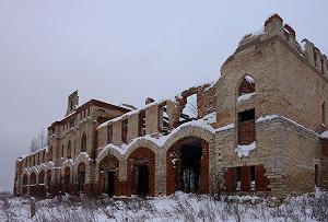 Местами можно различить элементы отделки стен.Но нет ни паркетных полов, ни декоративных росписей художника августа Томашки, ни коллекции картин, ни знаменитой зеркальной комнаты. Все в прошлом.