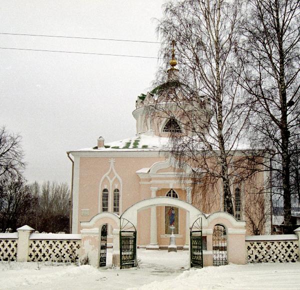 Издалека симпатичная Вознесенская церковь за ажурной оградой среди берез кажется сказочной. С трудом верится в реальность существования этого розового чуда.