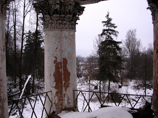 С одной из веранд (частично сгоревшей) открывается чудесный вид на пейзажный парк и речку Малую Истру.