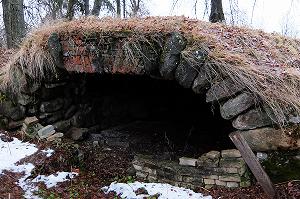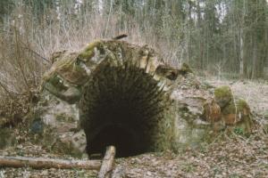 Когда-то на этом месте стоял погреб-ротонда, можно сказать, беседка. Туда вели ступени,возвышающиеся теперь над маленьким рукотворным водоемом. Сейчас в парке идут восстановительные работы.