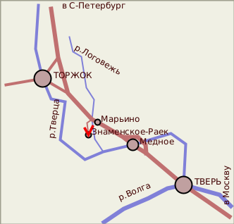 Чуть сбоку от главного дома стоит Знаменская церковь, постороенная немногим ранее главного ансамбля. Первоначально при ней было кладбище, но при строительстве дворцово-паркового ансамбля решено было его перенсти в соседнюю деревню Васильева гора, где по проекту Н.А. Львова построили часовню.