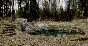 Между церковью и главным домом сохранились остатки погреба. Такие погреба, сложенные из валунов в распор, сохранились во многих окрестных усадьбах. Изначально конструкция была целиком каменной, кирпич добавили позже.