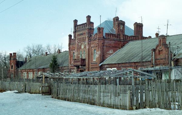 Невдалеке от главного дома довольно длинное каре одноэтажных служебных построек, используемых ныне под жилье с огородами.