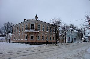 Интересен дом с торговыми лавками на первом этаже, выстроенный в конце XIX века на центральной Базарной площади. Полукруглый ризалит в нижней части выполнен из кирпича, а граненый второй этаж - деревянный.