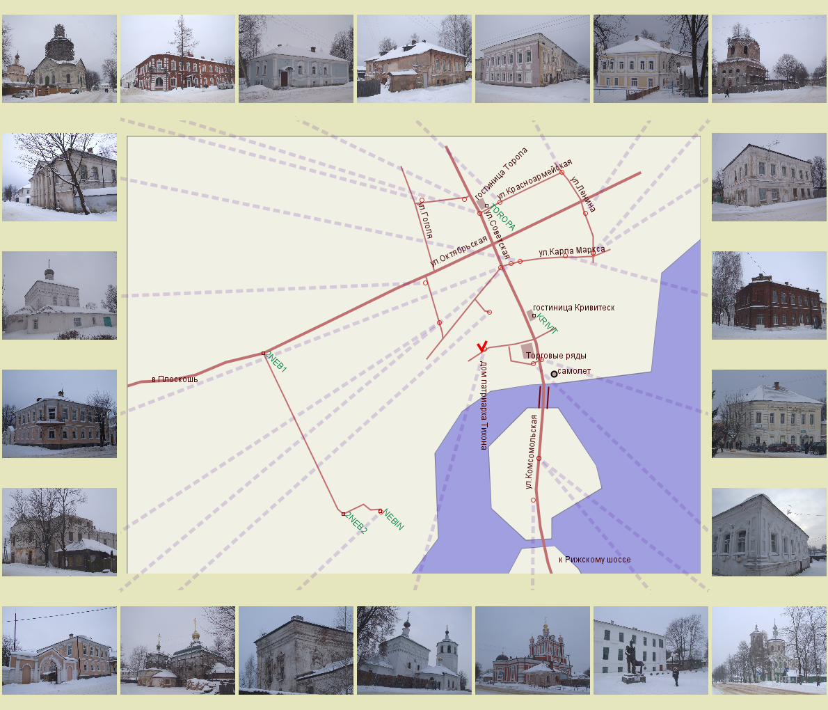 Торопец - очень древний город. Когда-то здесь жили племена кривичей, отсюда другое старое название города - Кривич или Кривитеск. Документальные свидетельства существования здесь крупного торгового поселения относятся к первой половине XI века. В Печерском патерике упомнается купец-торопчанин. Первое официальное известие о Торопце относится к 1150 году. Датой образования удельного Торопецкого княжества некоторые исследователи считают 1159 год, а другие - 1168. Последний торопецкий князь, Мстислав Удалой, был приглашен на княжение в Новгород, но Торопец оставался его уделом. В 1214 году, выдавая замуж дочь Феодосию, Мстислав дал ей в приданое Торопец. Вот почему именно здесь в 1239 году состоялось венчание ее сына Александра Невского с дочерью полоцкого князя, тоже Александрой. Расположенный на западе Валдайской возвышенности, на торговом пути "из варяг в греки", город привлекал к себе внимание не только купцов. Нередкими были нападения литовских рыцарей, которым в 1245 году удалось захватить Торопец. Правда, вскоре новгородцы во главе с Александром Невским освободили город. В XIV веке Торопец был захвачен литовским князем Ольгердом и разорен настолько сильно, что пришлось жителям переселиться на остров у истока реки Торопы из озера Соломенного (до этого город располагался на полуострове межу озером и рекой - сохранилось городище в южной части нынешнего города). На острове началось строительство укреплений: были насыпаны валы и сооружена деревянная крепость. В 1503 году (согласно грамоте) литовский князь Александр Казимирович уступил Торопец "государю Всея Руси" Ивану III. Однако это не спасало город от литовских набегов. К середине XVI века в Торопце насчитывалось 16 церквей и было два монастыря: мужской Никольский и женский Иоанно-предтеченский. Во время Ливонской войны (1580) город был укреплен: подсыпали валы и возвели новые деревянные крепостные стены. Городская крепость выдержала осаду, как и позднее, в годы Смутного времени. Однако окрестные земли и посад были сильно разорены. В 1650-1653 годах стены и башни были обновлены, а земляной вал вновь подсыпан. Из 9 башен 3 были проезжими, в одной располагался тайник для воды. Первой каменной постройкой считается собор Никольского монастыря (1666-1669), перестроенный в 1697. Во второй половине XVII - начале XVIII веков в городе стали возводиться каменные церкви; началось каменное строительство в Троицком Небине монастыре. В 1708 году Торопец вошел в состав Ингерманландской губернии, а с 1777 года стал уездным городом Псковской губернии (побывав предварительно в составе Санкт-Петербургской и Новгородской). Став в XVIII веке крупным торгово-промышленным центром, Торопец обзавелся и каменными гражданскими постройками: стали возводиться купеческие дома. В 1778 году был утвержден регулярный план города, а в 1781 - герб. Строительство по утвержденному регулярному плану стало активно вестись после 1792 года, когда в результате сильного пожала выгорела значительная часть города. После войны 1812 года в Торопце появилось много кирпичных домов, возведенных разбогатевшими на военных поставках местными жителями. К середине XIX века город утратил торговое значение, с этого времени строительная активность снижается, и архитектурный облик Торопца меняется мало. В 1905-1907 годах к Торопцу подошла железная дорога, соединившая город с Москво