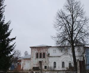 Неподалеку от церкви стоит, вероятно, дом причта - добротное двухэтажное кирпичное здание.